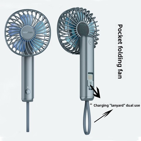 Mini ventilador USB portátil F20 rosa, ventilador plegable de bolsillo de mano con cordón, viento de tres velocidades para uso doméstico al aire libre
